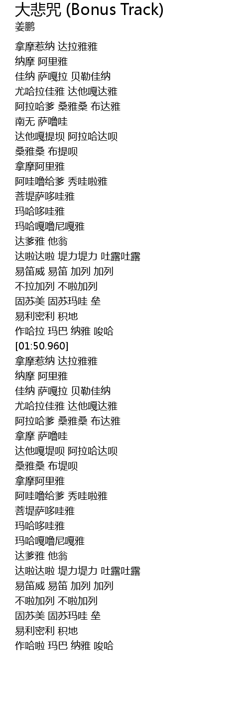 | [01:59.890] | 拿摩惹纳 达拉雅雅 |