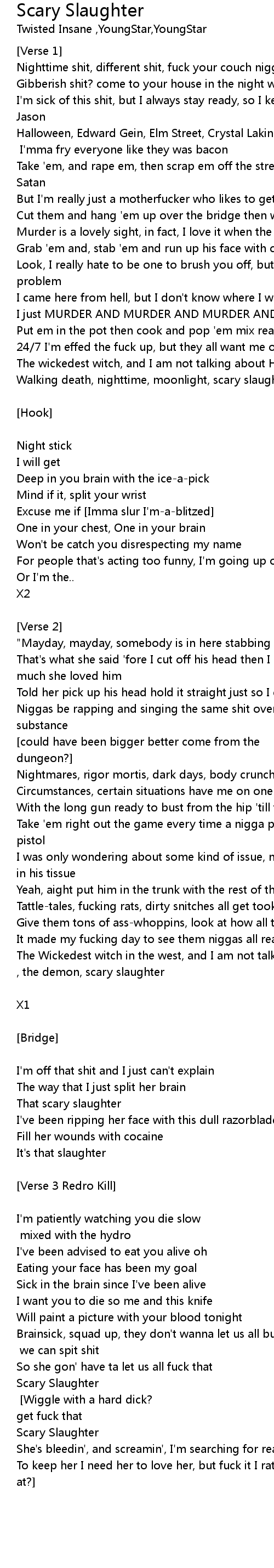 Take 'em, and rape em, then scrap em off the street at night; they think I'm Satan |