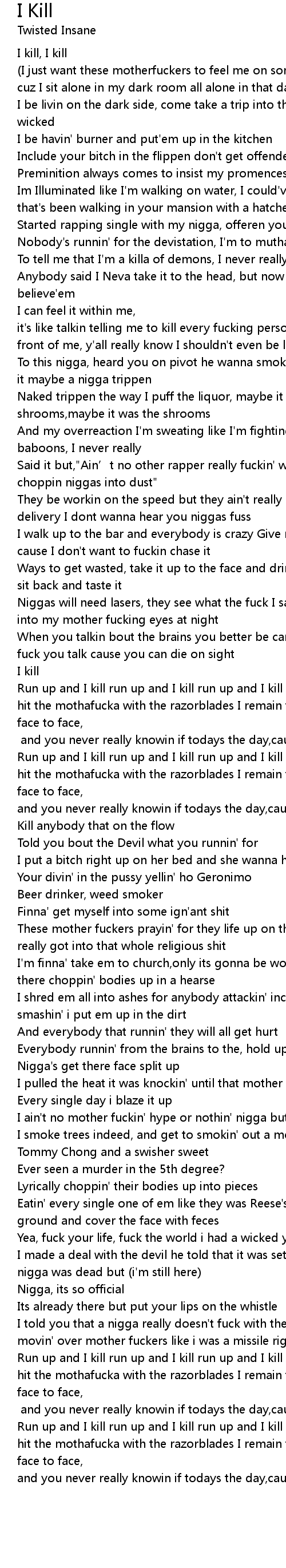 | [03:14.58] | Run up and I kill run up and I kill run up and I kill nigga |