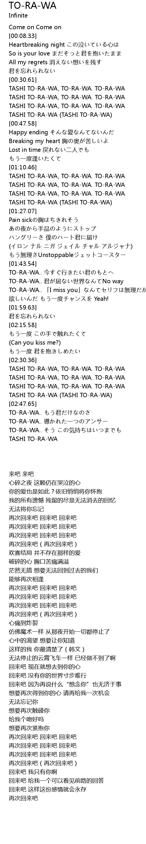 | [01:52.65] | TORAWA.. I miss you wu li |