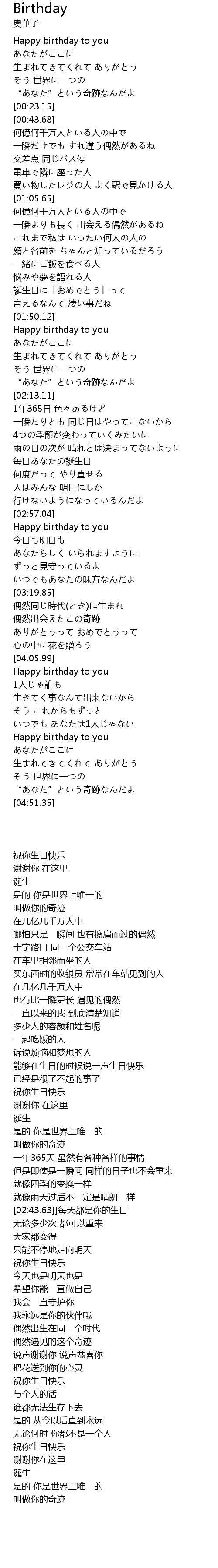 | [02:08.11] | “あなた”という奇跡なんだよ |