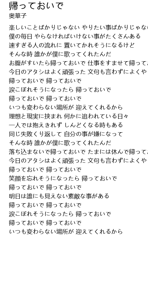 | 落ち込まないで帰っておいで たまには休んで帰っておいで | |