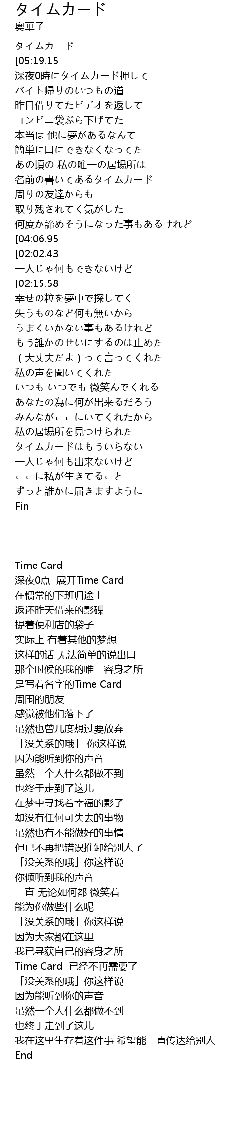 | [00:15.23] | 深夜0時にタイムカード押して |