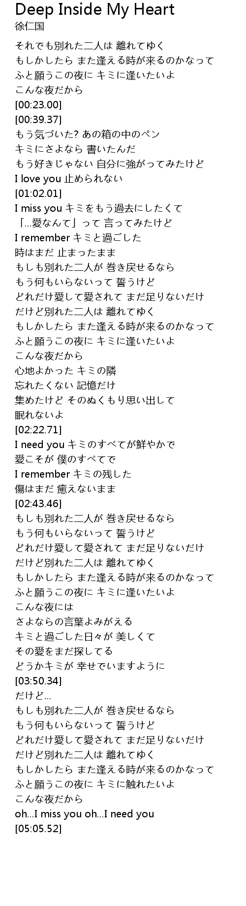 | [04:47.78] | oh...I miss you oh...I need you |