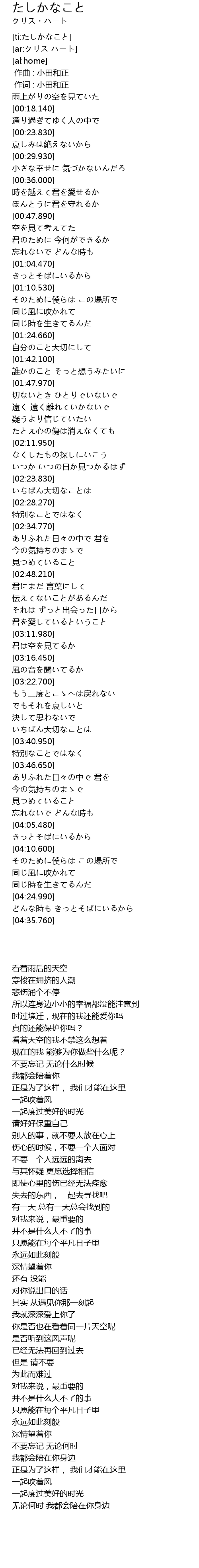 | [04:27.180] | どんな時も きっとそばにいるから |