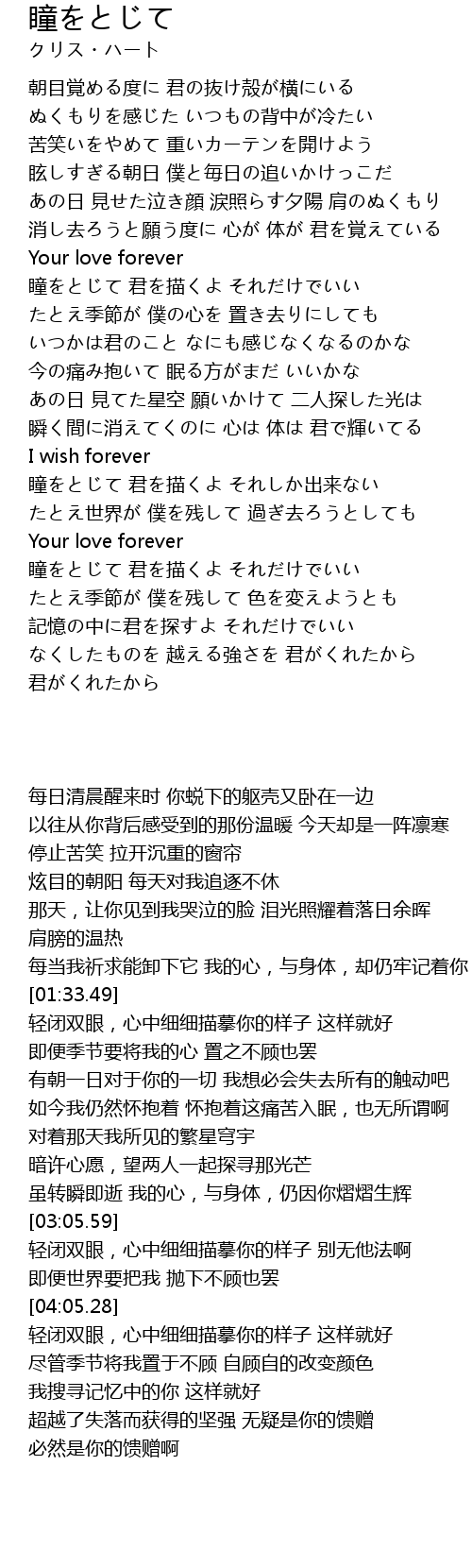 | [01:35.48] | 瞳をとじて 君を描くよ それだけでいい |