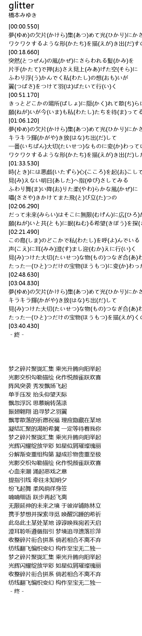 | [03:20.860] | 光辉闪耀绽放华彩 如星似屑璀璨瑰丽 |