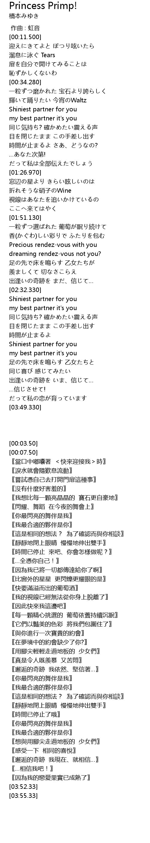 | [00:43.250] | 輝いて踊りたい 今宵のWaltz |