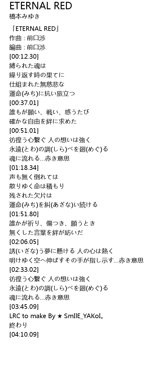 | [00:00.30] | 「ETERNAL RED」 |