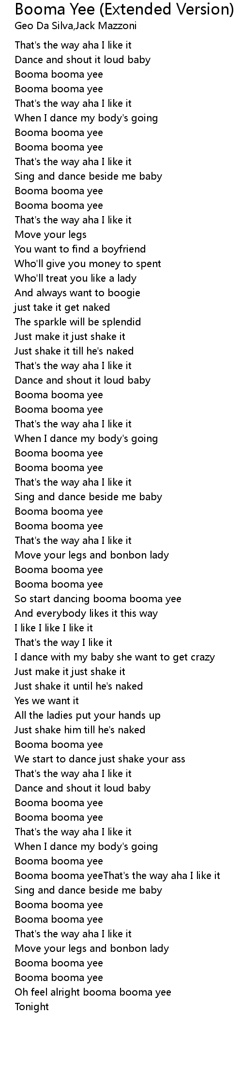 Booma booma yeeThat's the way aha I like it |