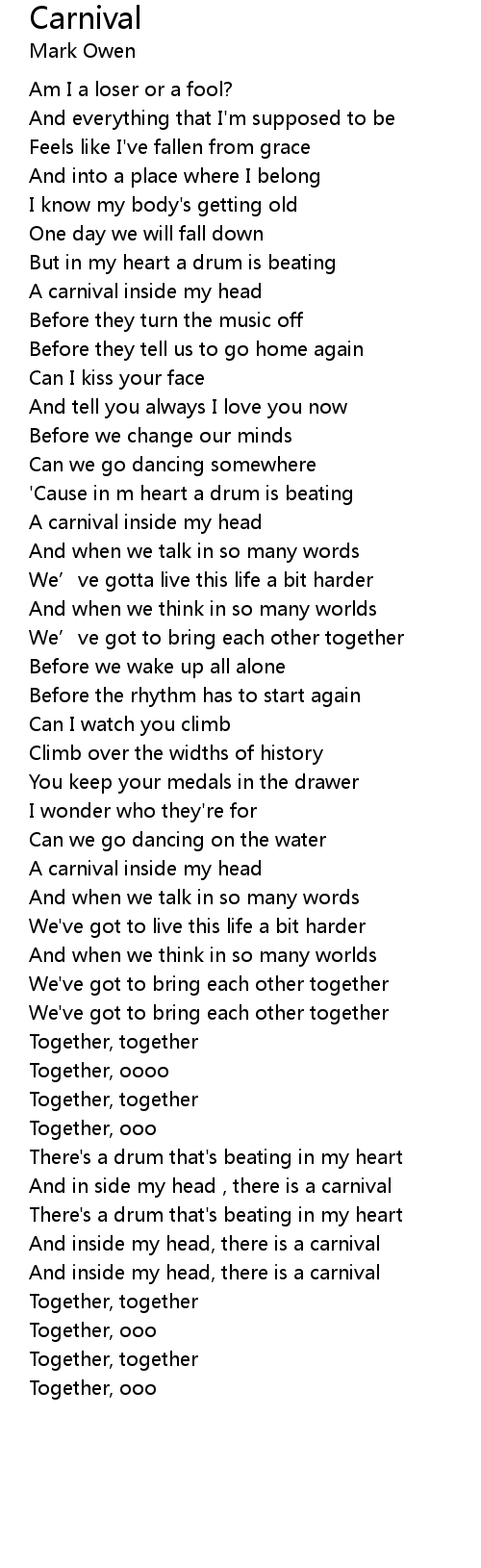 | And in side my head , there is a carnival | |