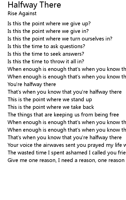 When enough is enough that's when you know that you're halfway there |