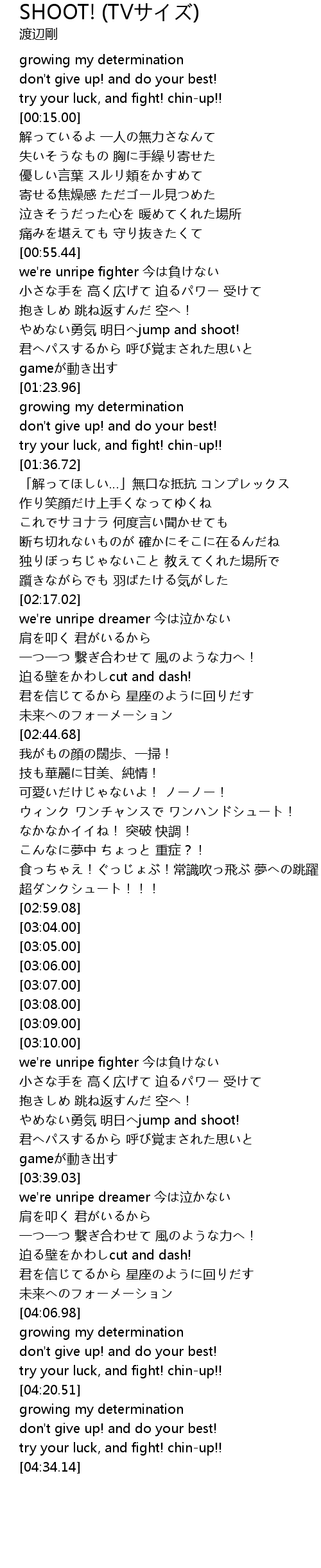| [01:09.32] | やめない勇気 明日へjump and shoot! |