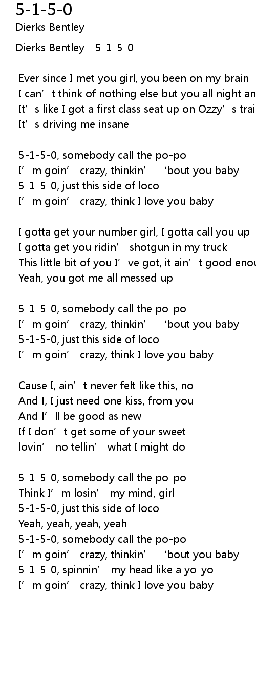 | 5-1-5-0, spinnin’ my head like a yo-yo | |
