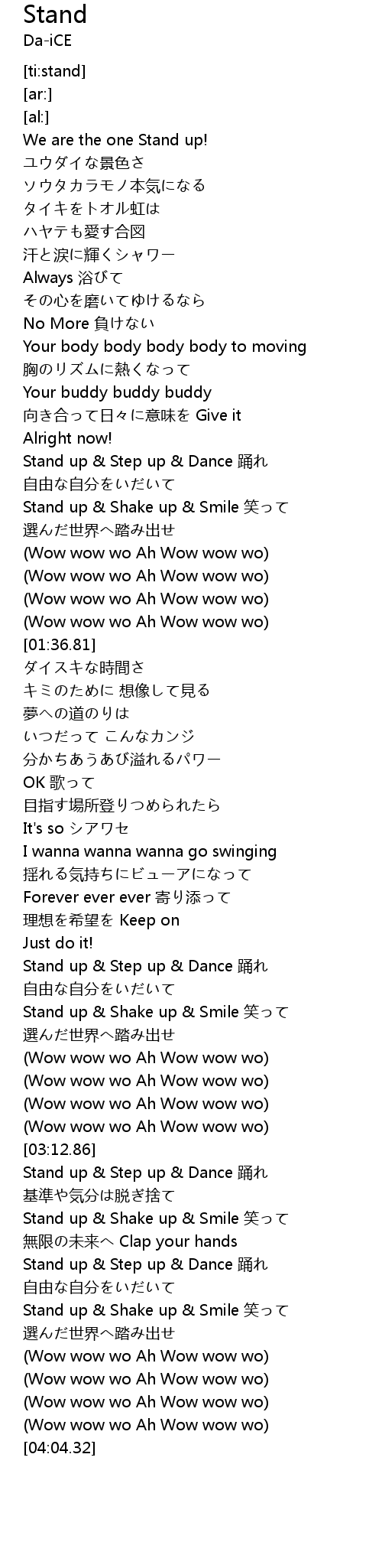 | [03:20.37] | Stand up & Step up & Dance 踊れ |