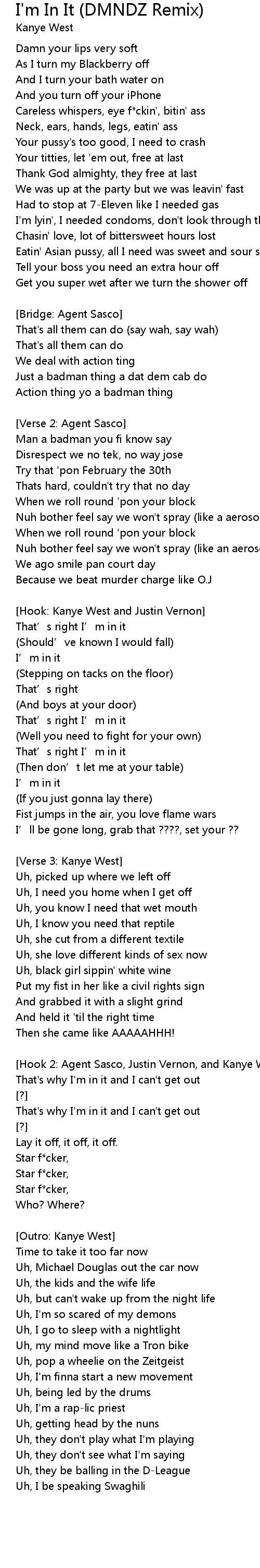 | [Hook 2: Agent Sasco, Justin Vernon, and Kanye West] | |
