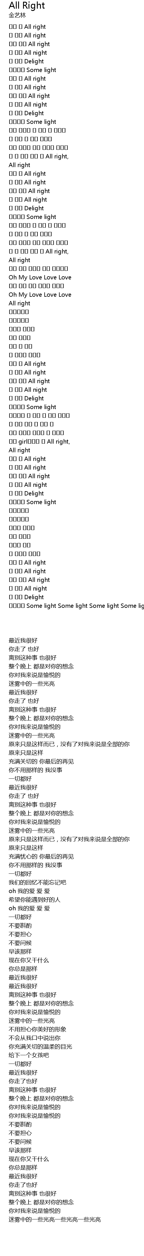 | [00:01.000] | 요즘 난 All right |