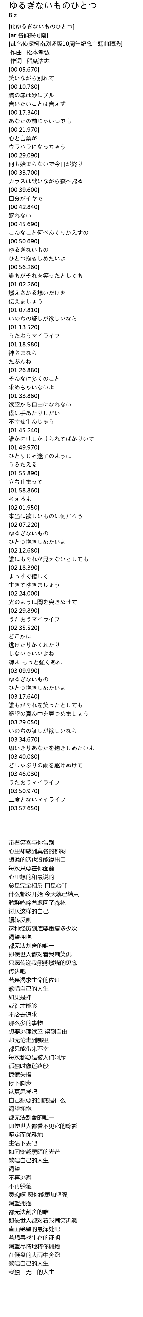 | [00:01.00] | 作词 : 稲葉浩志 |