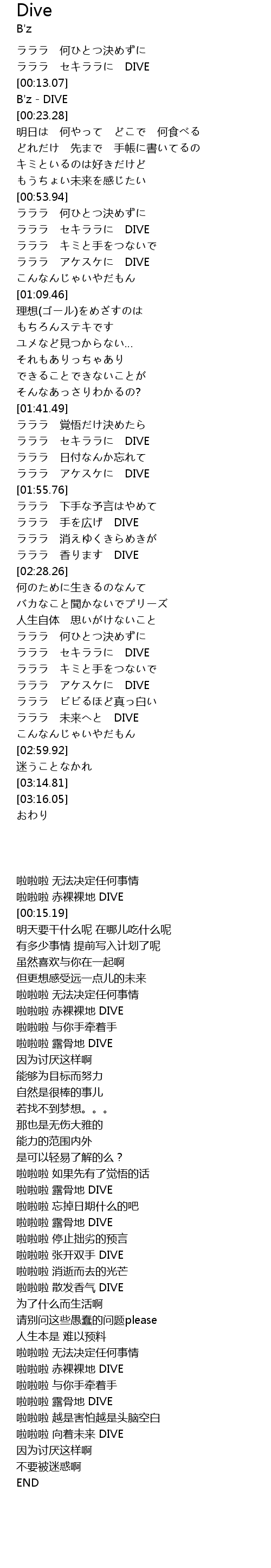 | [02:54.93] | 啦啦啦 向着未来 DIVE |