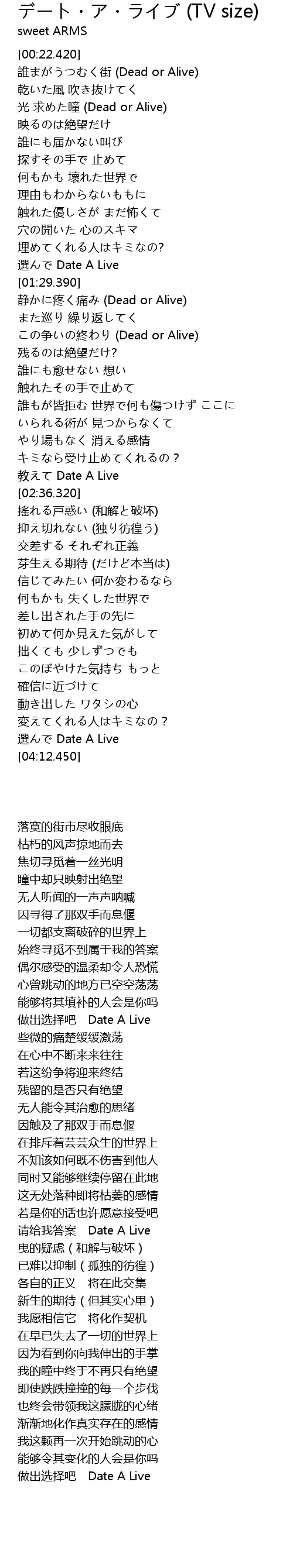 | [01:25.100] | 選んで Date A Live |