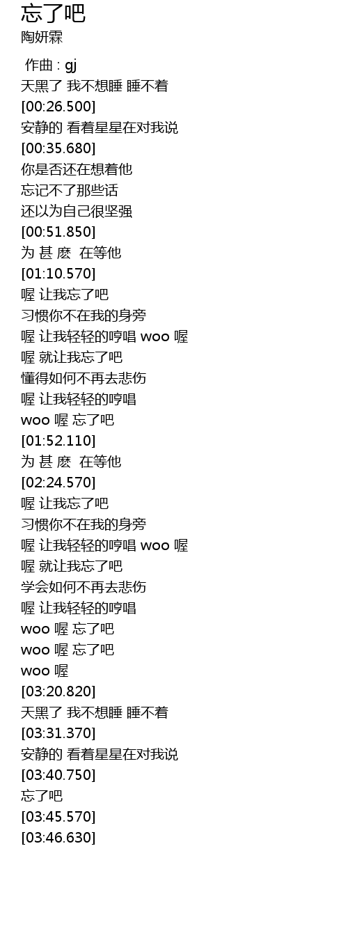 | [02:27.440] | ō ràng wǒ wàng le ba |