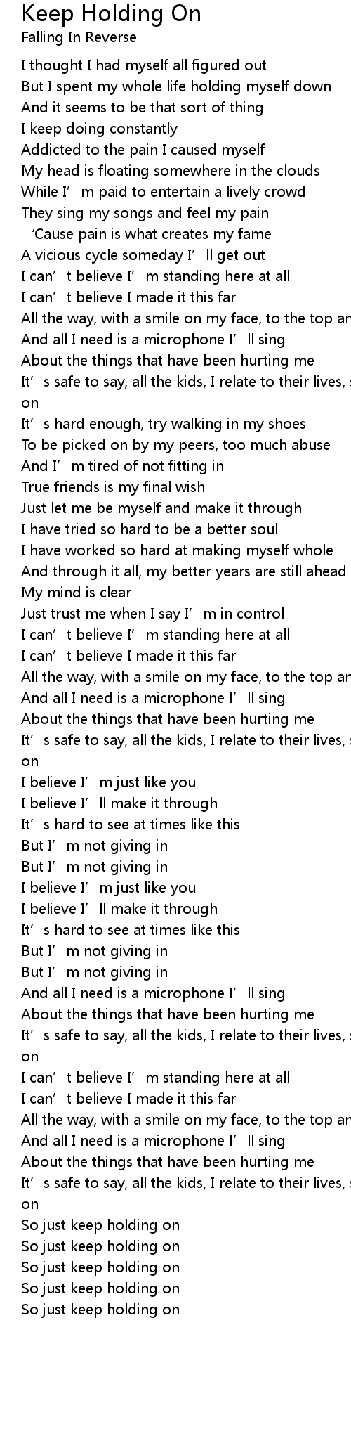 | It' s safe to say, all the kids, I relate to their lives, so just keep holding on | |