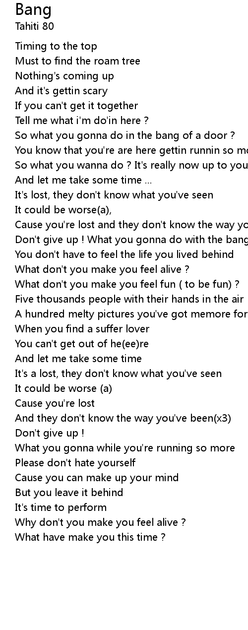 | So what you gonna do in the bang of a door ? | |