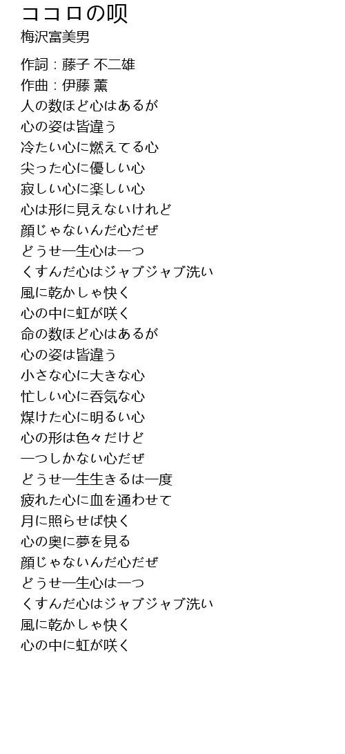 | [03:00.889] | 顔じゃないんだ心だぜ |