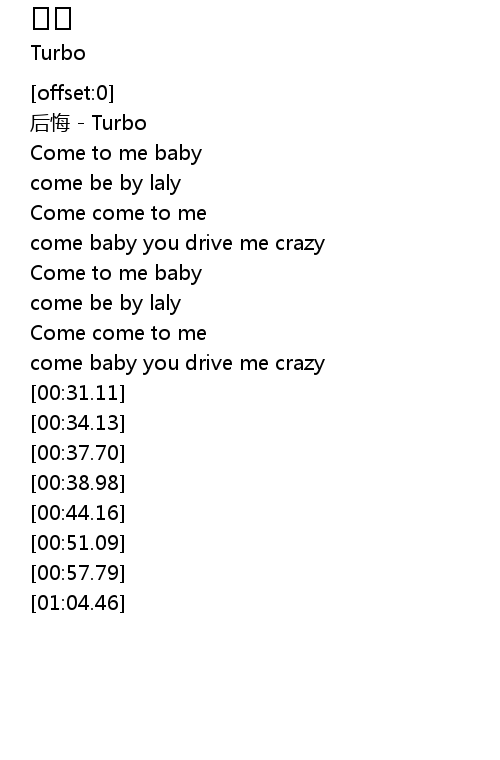 | [00:00.67] | 后悔 - Turbo |