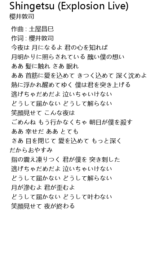 | 歌曲 | Shingetsu (Explosion Live) |