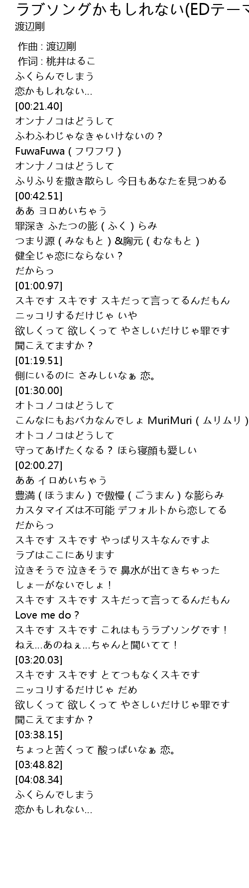 | [03:01.86] | スキです スキです スキだって言ってるんだもん |