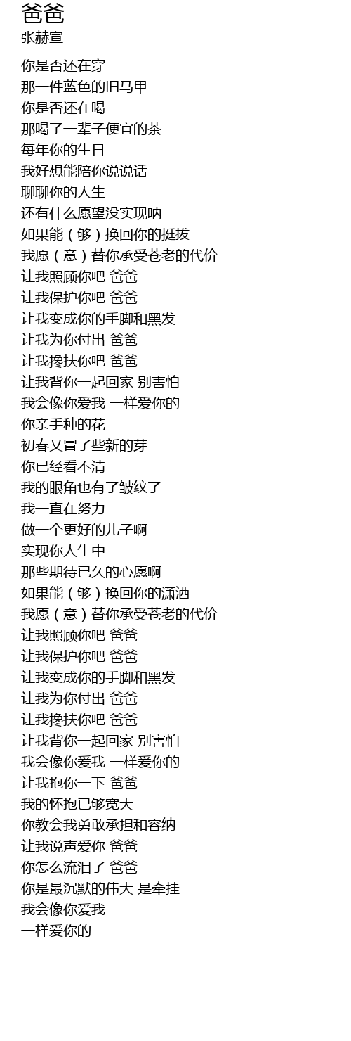 | [03:17.61] | ràng wǒ shuō shēng ài nǐ bà bà |