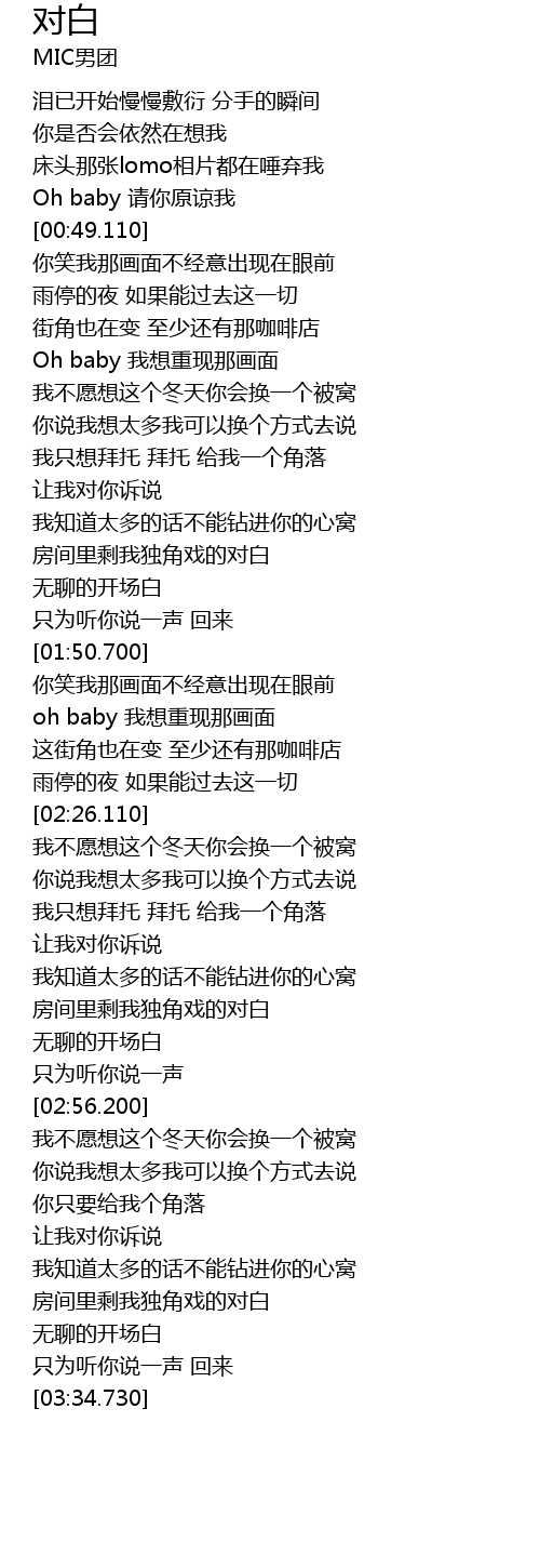 | [00:43.150] | Oh baby 请你原谅我 |