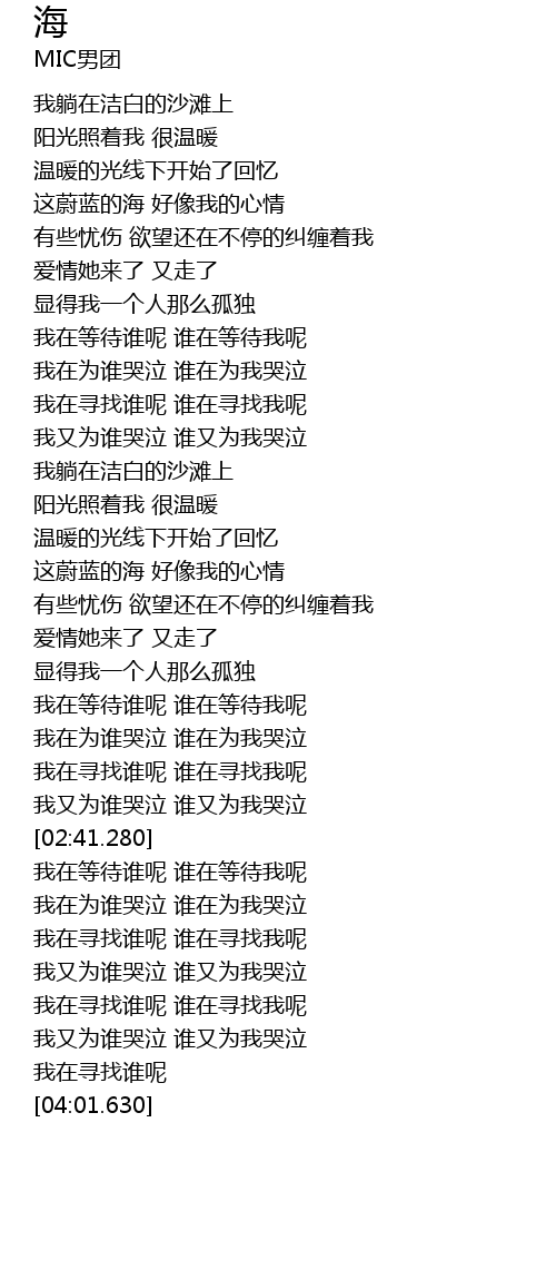 [01:45.410] 这蔚蓝的海 好像我的心情