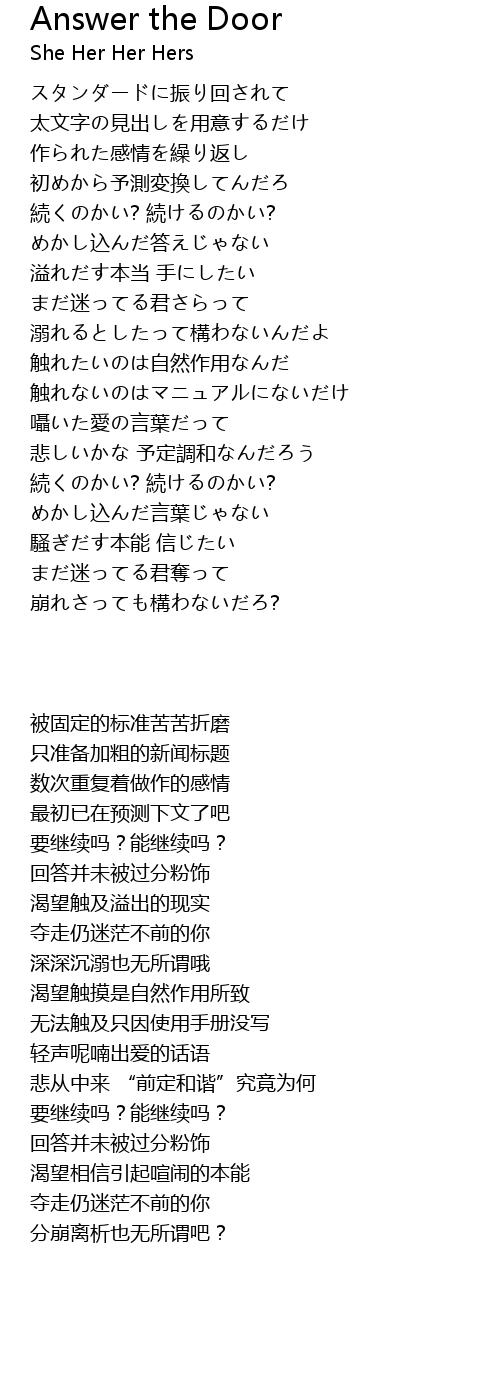 | 歌曲 | Answer the Door |