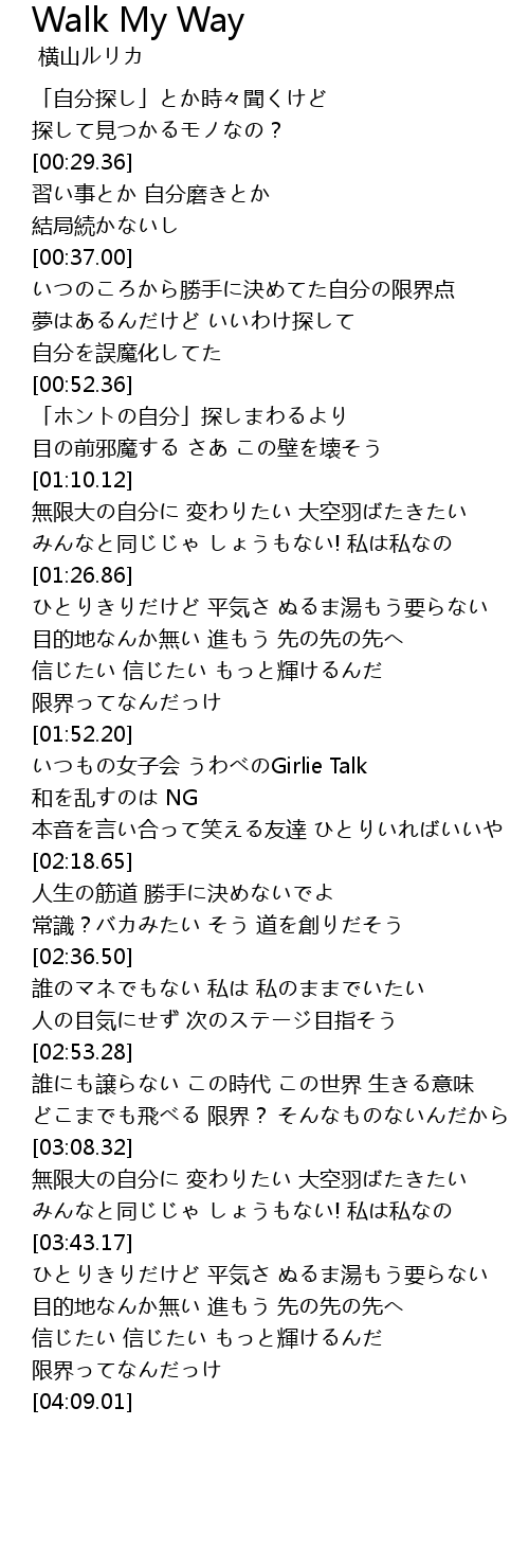 | [02:38.18] | 誰のマネでもない 私は 私のままでいたい |