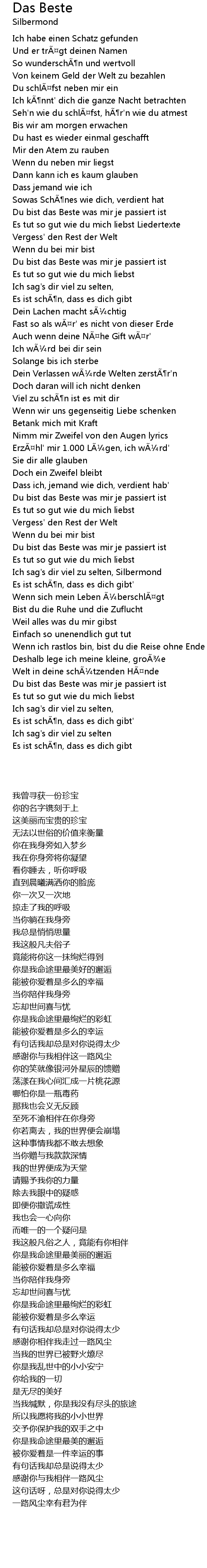 | 歌曲 | Das Beste |