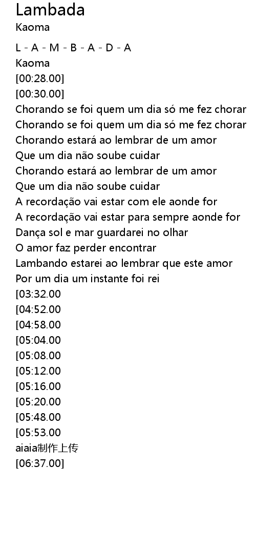 | [03:19.00][05:53.00] | Dançando LAMBADA ! |