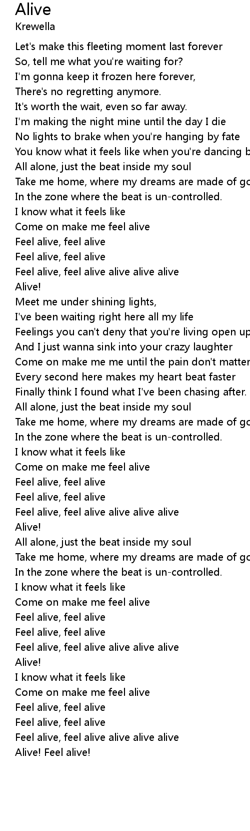 Feel alive, feel alive alive alive alive |