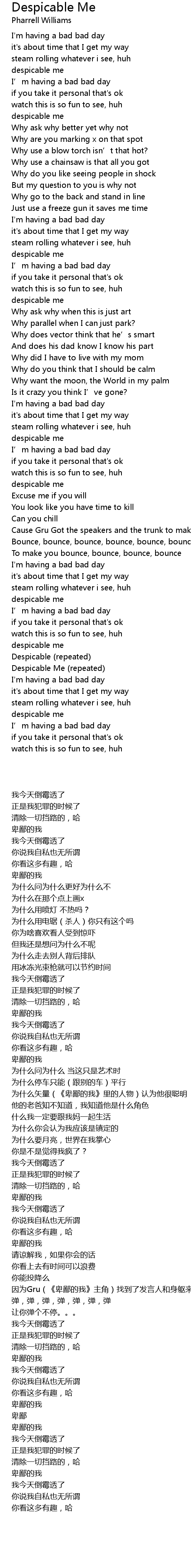 | [02:50.100] | Despicable Me repeated |