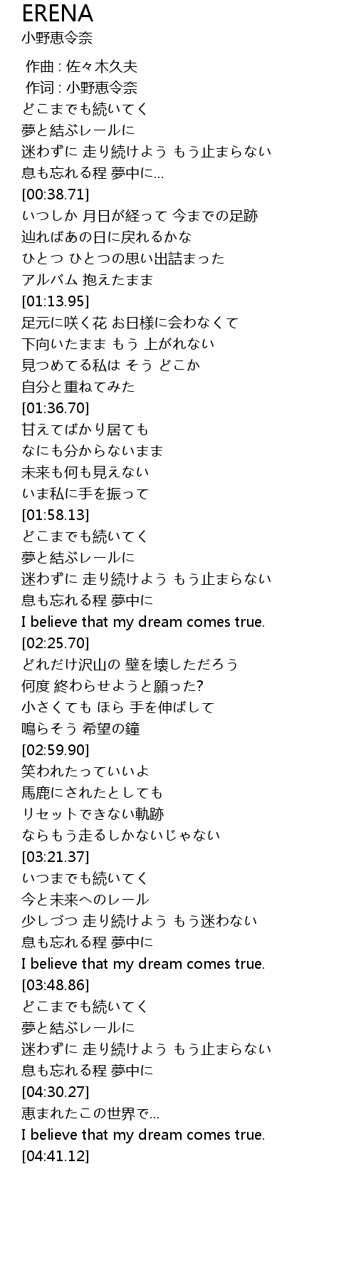 | [03:45.74] | I believe that my dream comes true. |