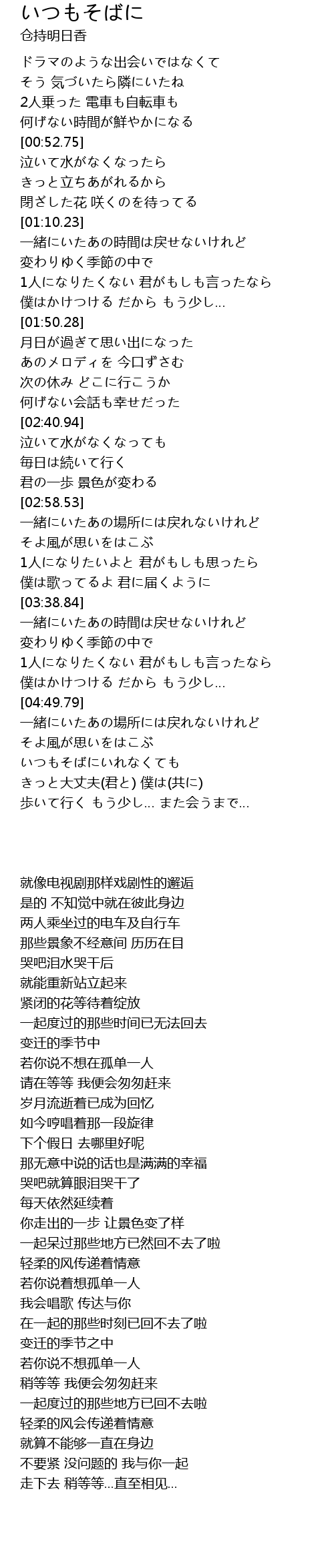 | [00:27.13] | そう 気づいたら隣にいたね |