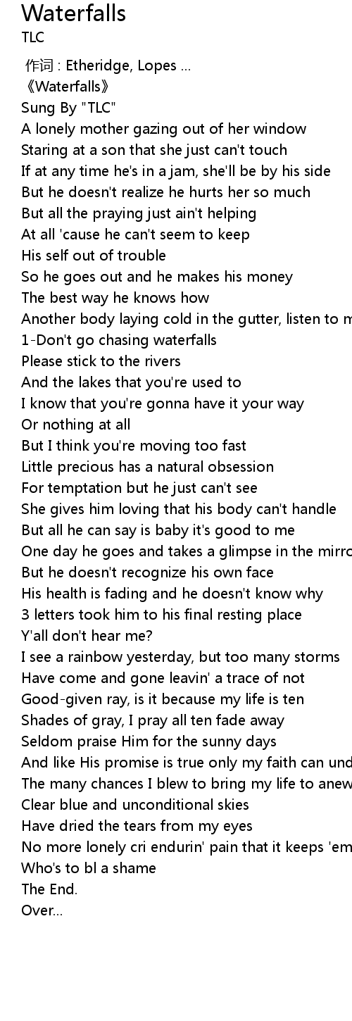 | [01:18.62] | 1Don' t go chasing waterfalls |