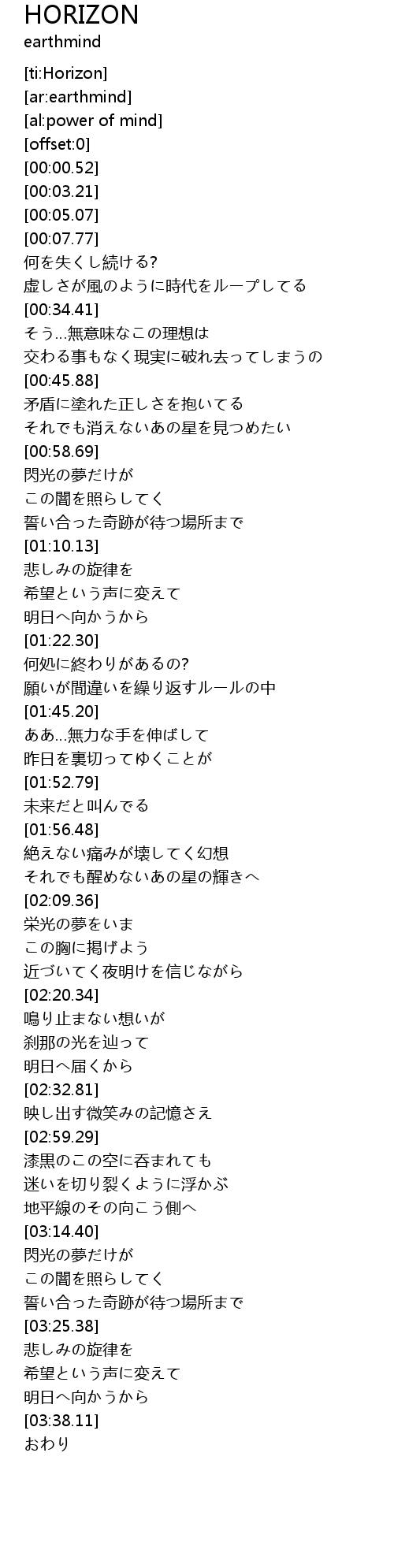 | [01:37.87] | 願いが間違いを繰り返すルールの中 |