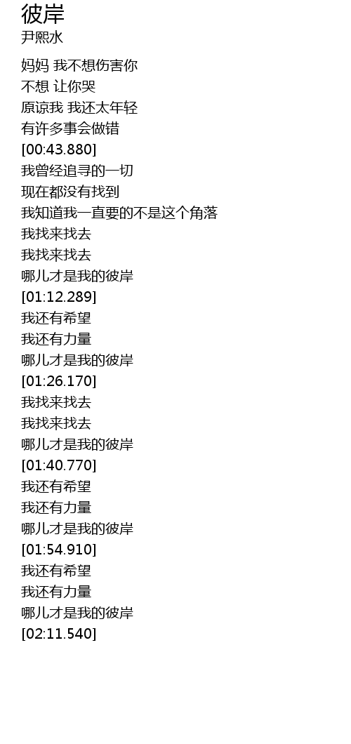 | [01:35.520] | 哪儿才是我的彼岸 |