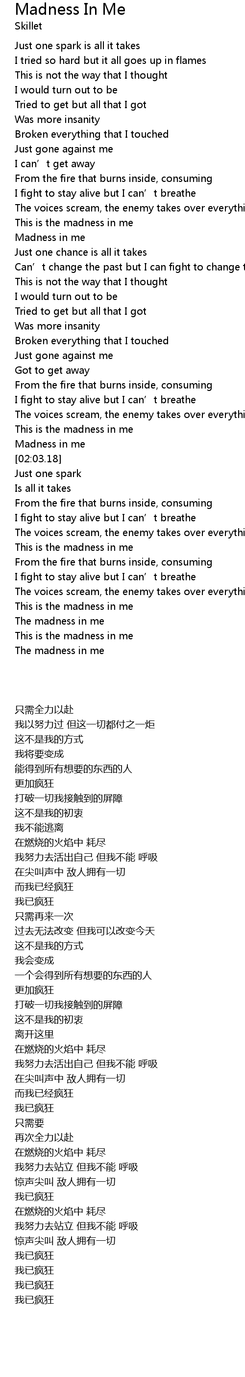 | [02:55.64] | This is the madness in me |