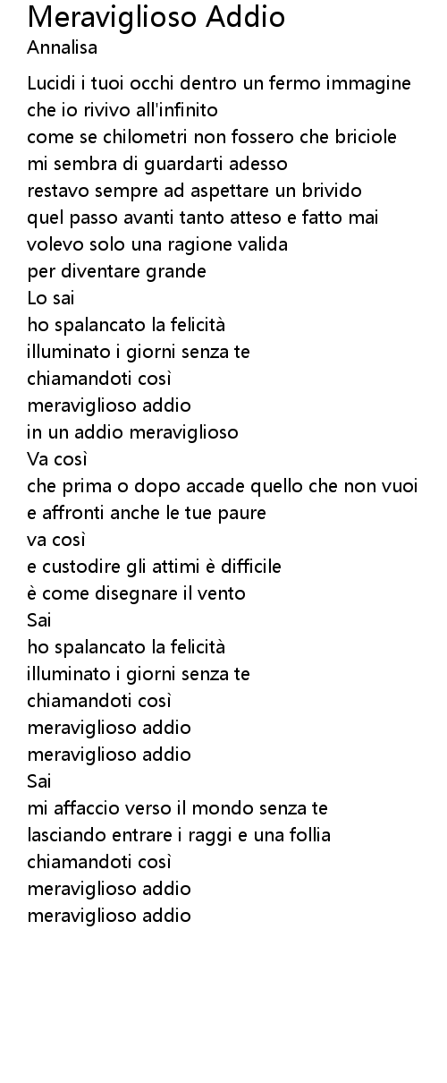 | meraviglioso addio |