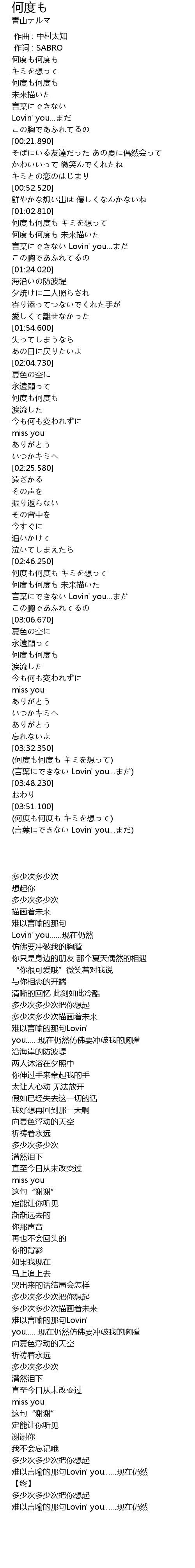 | [04:03.650] | (言葉にできない Lovin' you…まだ) |