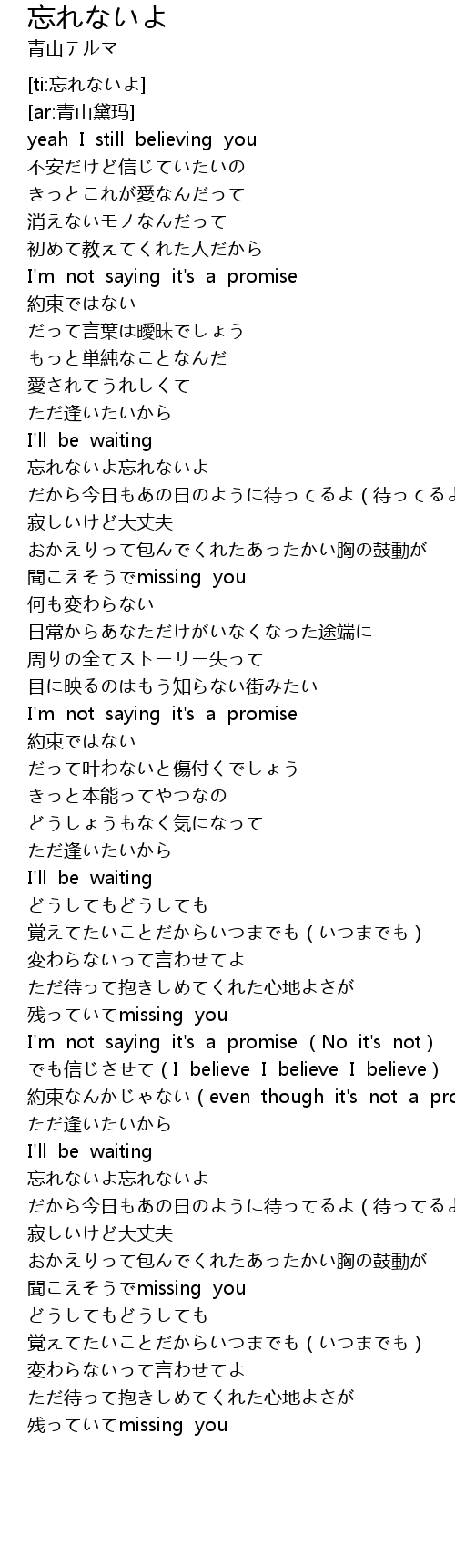 | [03:16.52] | 約束なんかじゃない(even though it's not a promise) |