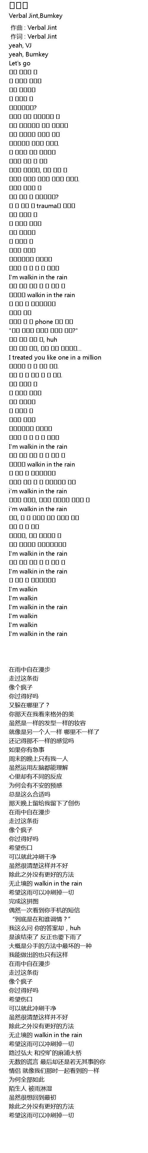 | [02:12.010] | 끝도없이 walkin in the rain |